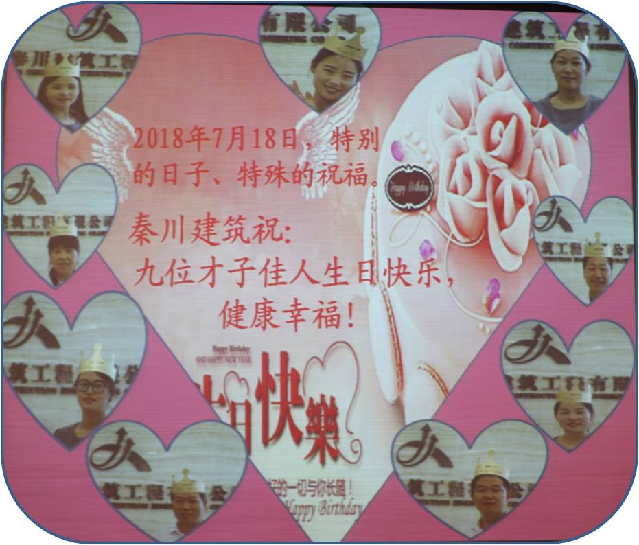 2018年7月18日,陜西秦川建筑工程有限公司迎來了2018年度第一次員工生日Party,本次活動由總經(jīng)理助理王江濤負(fù)責(zé)組織、策劃。