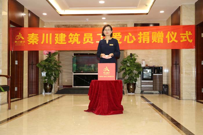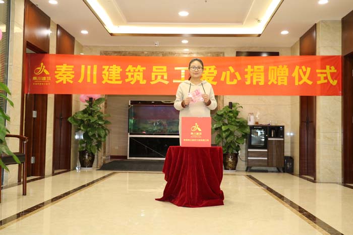 2018年12月7日,陜西秦川建筑工程有限公司社會公益捐款在秦川商務中心7樓進行,捐款儀式由行政部主任李冬艷主任主持。