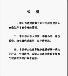 建筑施工企業(yè)主要負(fù)責(zé)人、項(xiàng)目負(fù)責(zé)人和專職安全生產(chǎn)管理人員的安全生產(chǎn)考核合格證書(shū)由住建部部統(tǒng)一規(guī)定樣式(見(jiàn)附件2)。主要負(fù)責(zé)人證書(shū)封皮為紅色,項(xiàng)目負(fù)責(zé)人證書(shū)封皮為綠色,專職安全生產(chǎn)管理人員證書(shū)封皮為藍(lán)色。