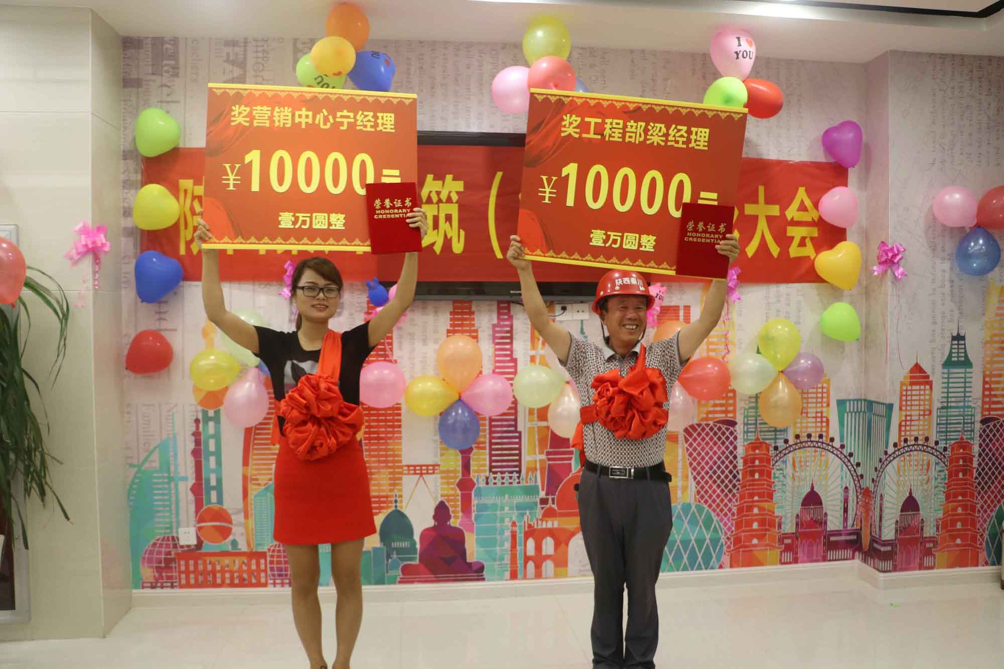 為了激發(fā)公司全體員工的工作熱情,全面完成2017年的工作任務(wù),按照公司的制度,2017年8月23日在營銷中心召開了表彰大會。表彰工程部梁紅經(jīng)理帶領(lǐng)部門人員在2016年秦川·華府5#、6#樓施工建設(shè)中,在項目管理、質(zhì)量安全、工程進度上做出了突出成績;表彰營銷中心寧蘊怡經(jīng)理帶領(lǐng)部門人員在零廣告投入的情況下,提前并超額完成公司下達的銷售任務(wù)。