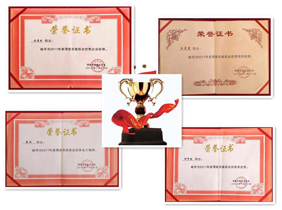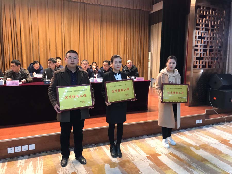 會(huì)議宣布了2017年度渭南市建筑業(yè)各類獎(jiǎng)項(xiàng)的評(píng)選結(jié)果,我公司榮獲“先進(jìn)企業(yè)”獎(jiǎng),劉總經(jīng)理榮獲市“優(yōu)秀企業(yè)經(jīng)理”,公司承建的秦川·華府5#、6#樓項(xiàng)目被評(píng)為“優(yōu)質(zhì)結(jié)構(gòu)工程”,項(xiàng)目經(jīng)理王星顯被評(píng)為市“優(yōu)秀項(xiàng)目經(jīng)理”,項(xiàng)目部總工程師梁紅、質(zhì)量員賀錦嬋、安全員鈔軍勝,分別被評(píng)為市“優(yōu)秀總工程師”、市“優(yōu)秀質(zhì)量員”、市“優(yōu)秀安全員”。
